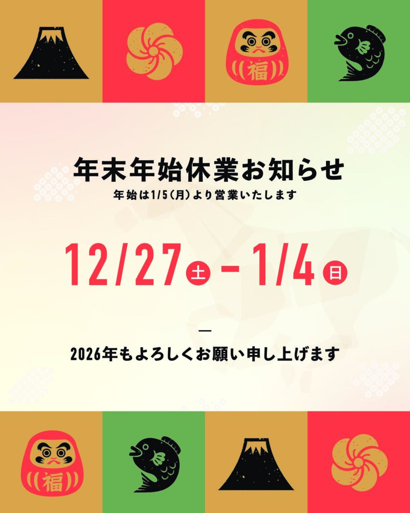 【年末年始休館日のお知らせ】